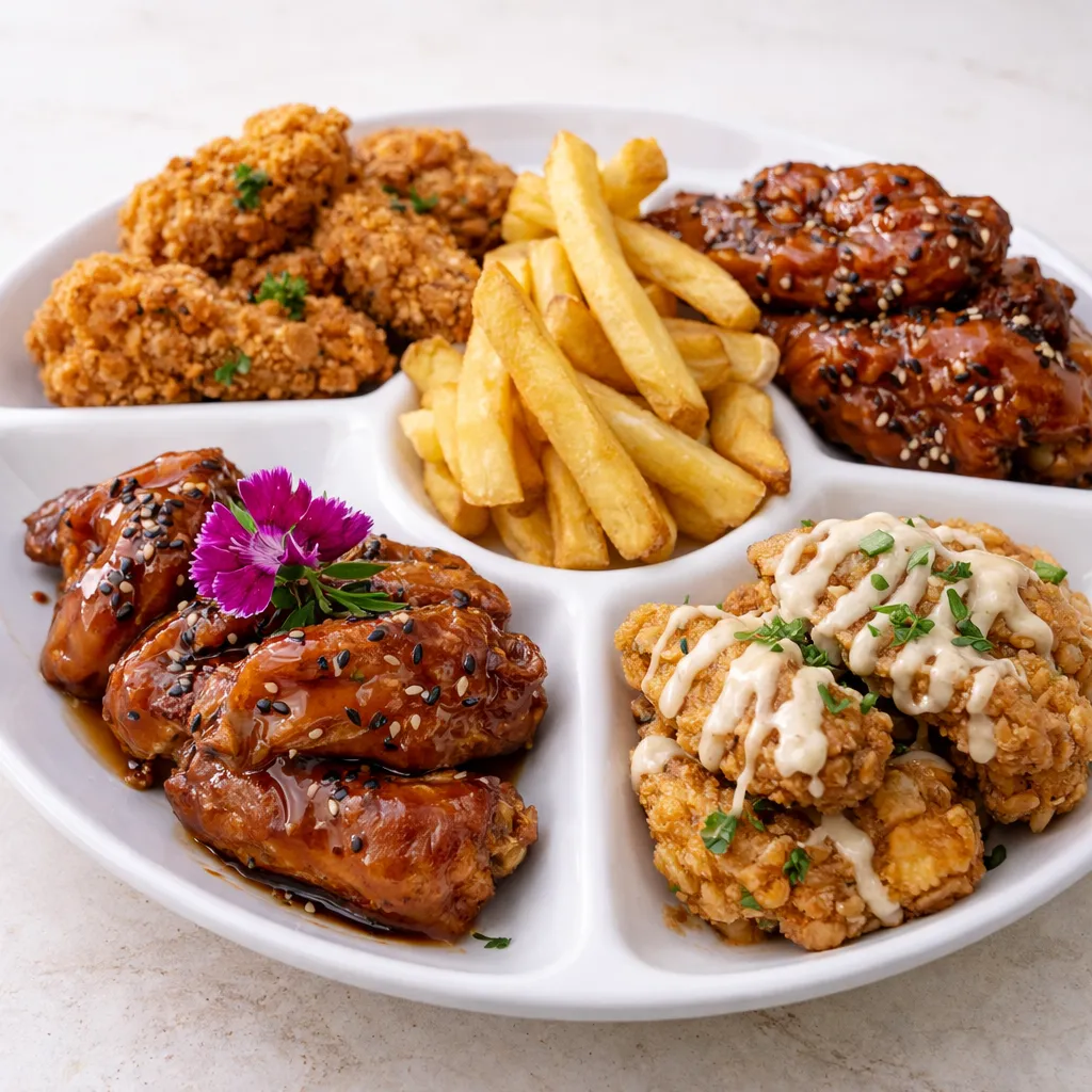BBQ glaseadas y ahumadas, acevichadas frescas y cítricas, nikkei intensas con notas orientales y broaster doradas y ultra crujientes. Acompañadas de papas rústicas recién fritas, perfectas para compartir y disfrutar sin apuros.